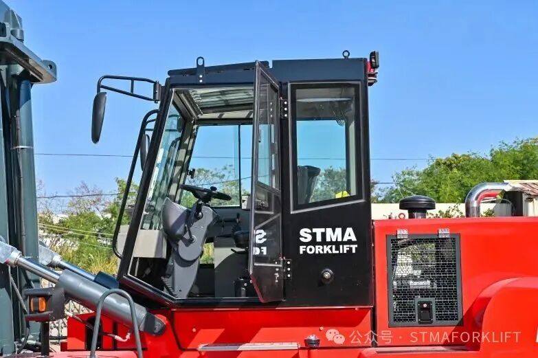 Beyond traditional "power-oriented" designs, STMA deeply integrates intelligent technology into this heavy-duty forklift. The standard advanced human-machine interface allows for real-time monitoring of equipment status, fuel consumption, load, and maintenance information. The integrated intelligent safety system includes a panoramic monitoring camera, ultrasonic radar obstacle detection, automatic load torque display and limiting, and tilt warning, greatly expanding the operator's field of vision, proactively preventing potential risks, and building a comprehensive safety barrier for personnel and equipment. The ergonomically designed new cab provides a wide field of vision, a low-noise environment, and an adjustable suspended seat, significantly reducing fatigue during long hours of operation and improving operational accuracy and comfort.
