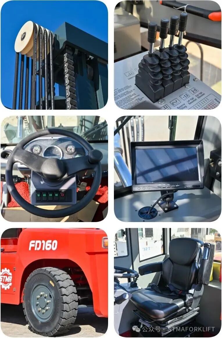When facing massive loads often exceeding ten tons, stability and strength are paramount. The STMA 16-ton forklift is equipped with a custom-designed, high-efficiency electronically controlled diesel engine, delivering powerful yet smooth power output, ensuring excellent climbing ability and travel speed even under full load. Its advanced hydraulic system, precisely tuned, achieves ultimate smoothness and precise control during lifting, effectively protecting cargo safety and reducing impact. The reinforced mast, axles, and chassis structure, combined with ultra-wide tires, endow the equipment with unparalleled stability and durability, enabling it to operate with ease even in complex and demanding site conditions.