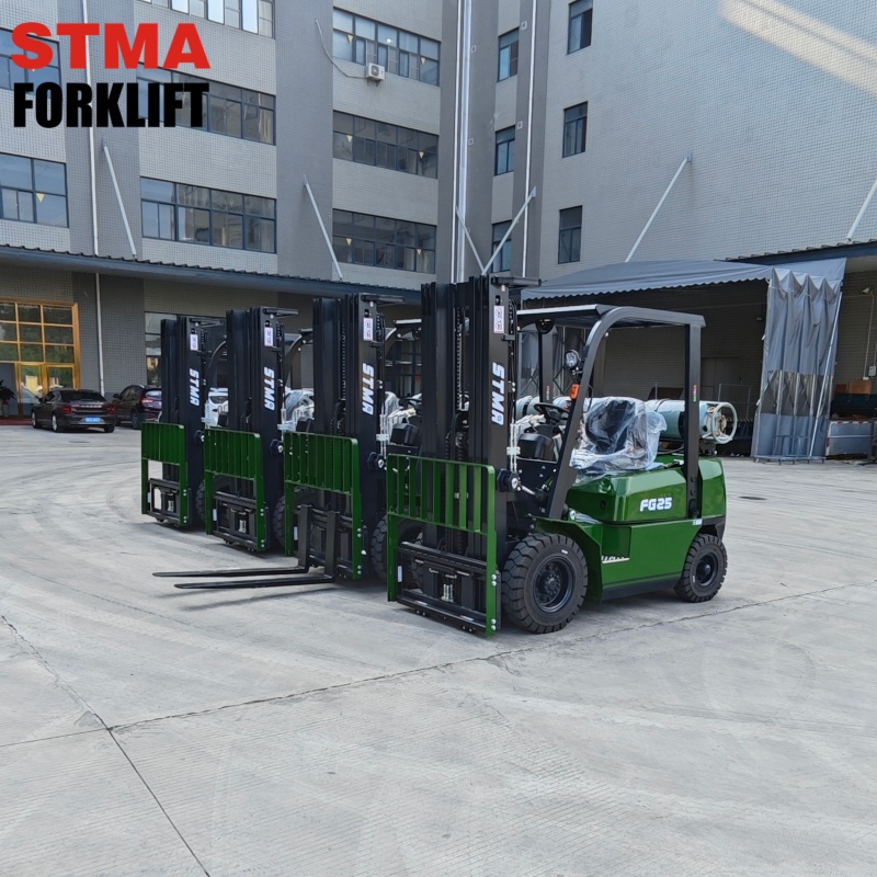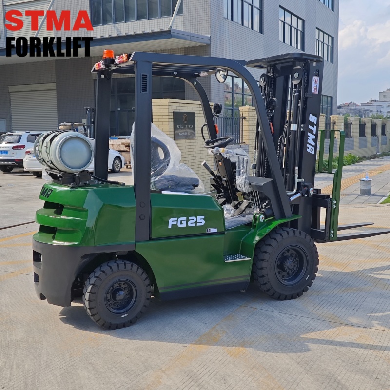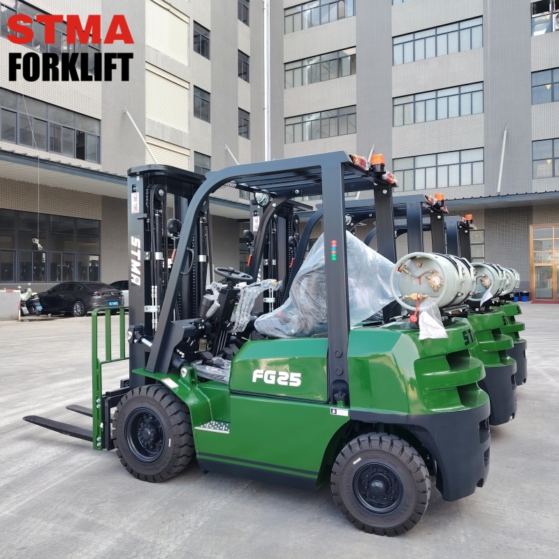 STMA 2.5ton gasoline lpg forklift with 3000mm two stage mast and side shifter attachment