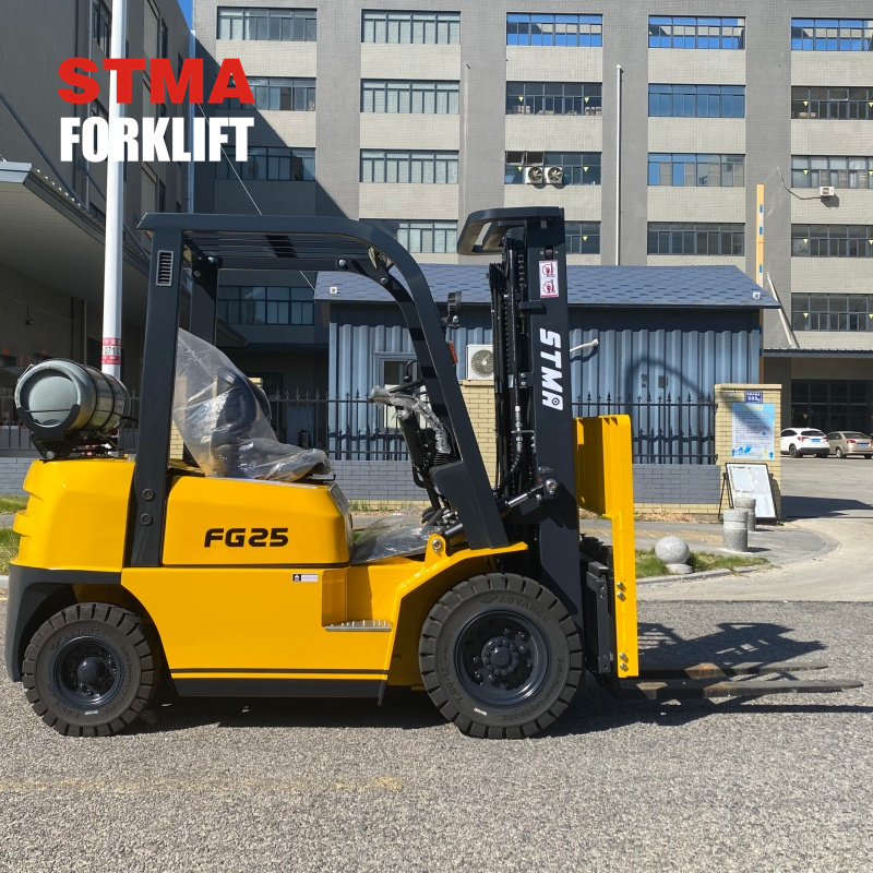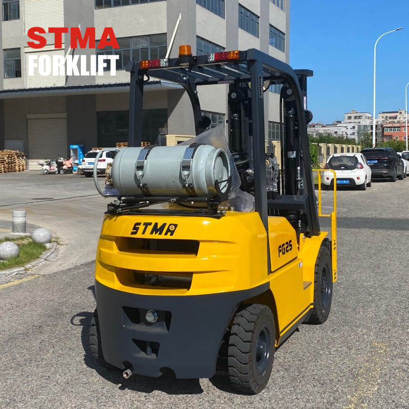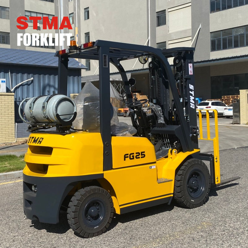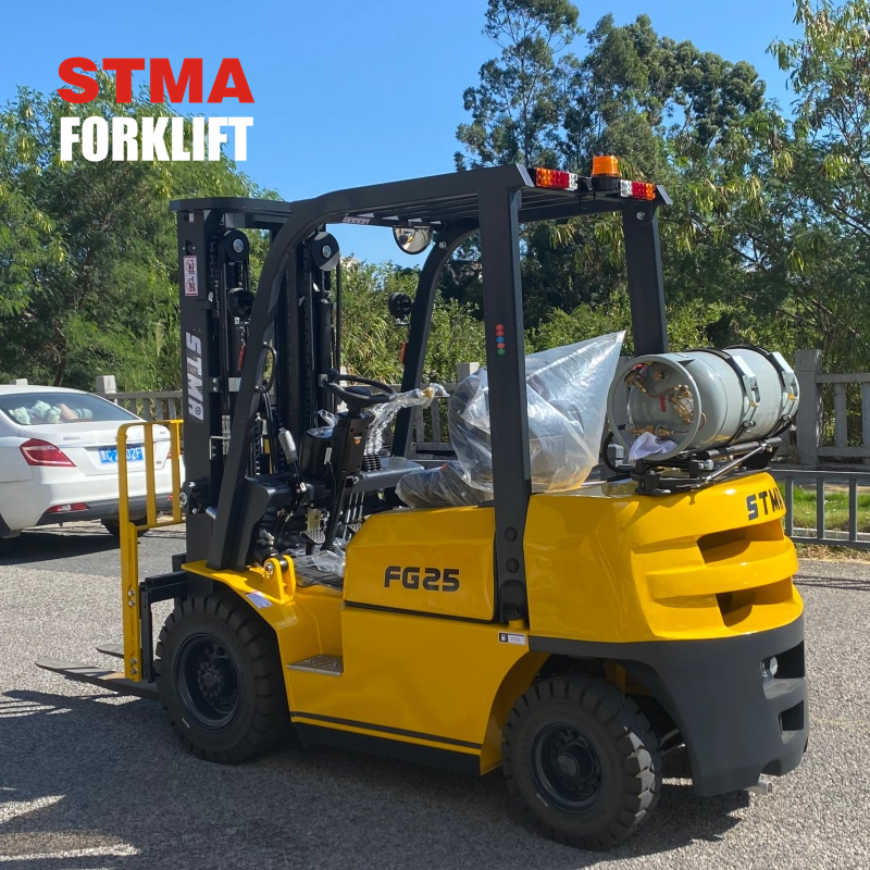 STMA 2.5ton gasoline lpg forklift with 3000mm two stage mast and side shifter attachment
