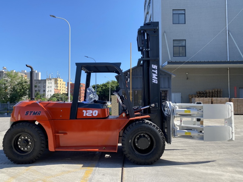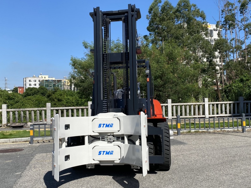 STMA forklift with concrete pipe clamp