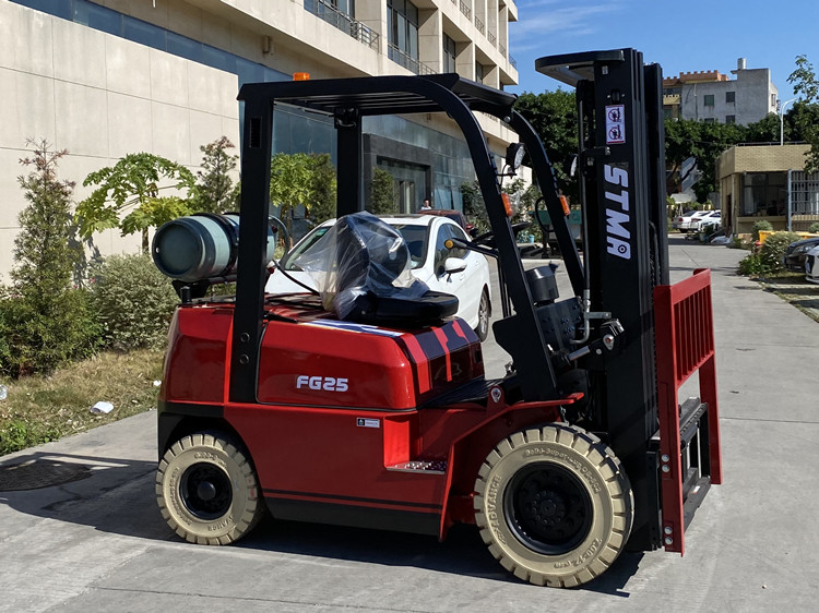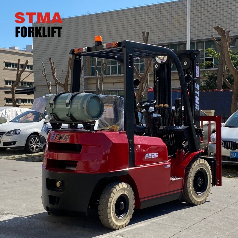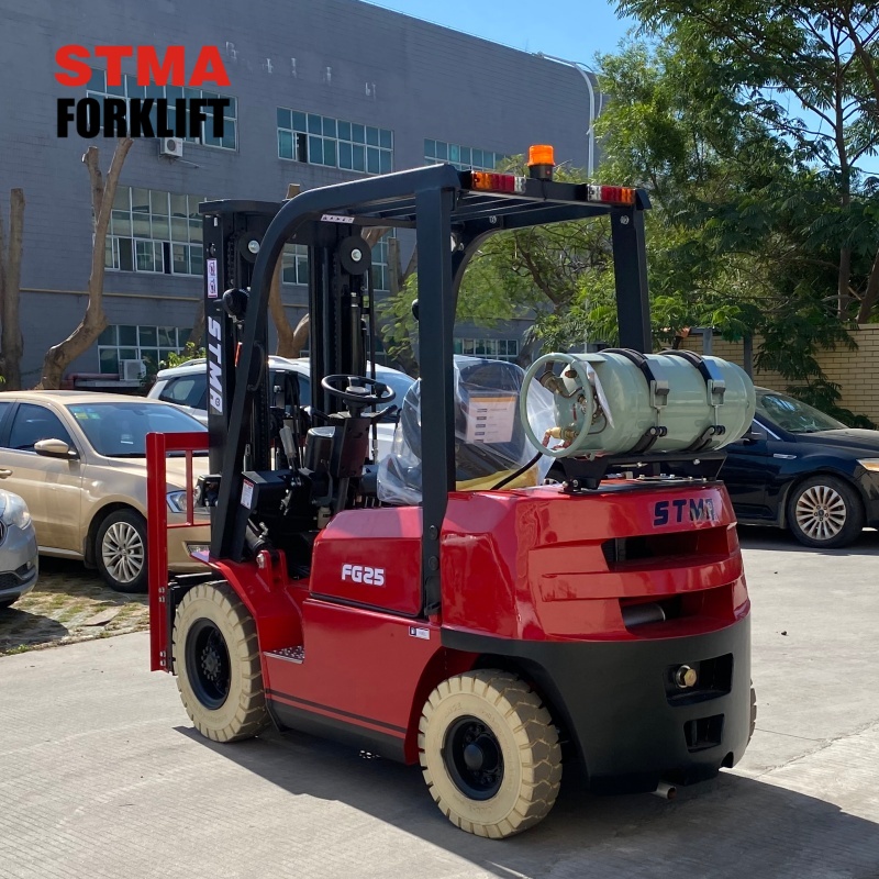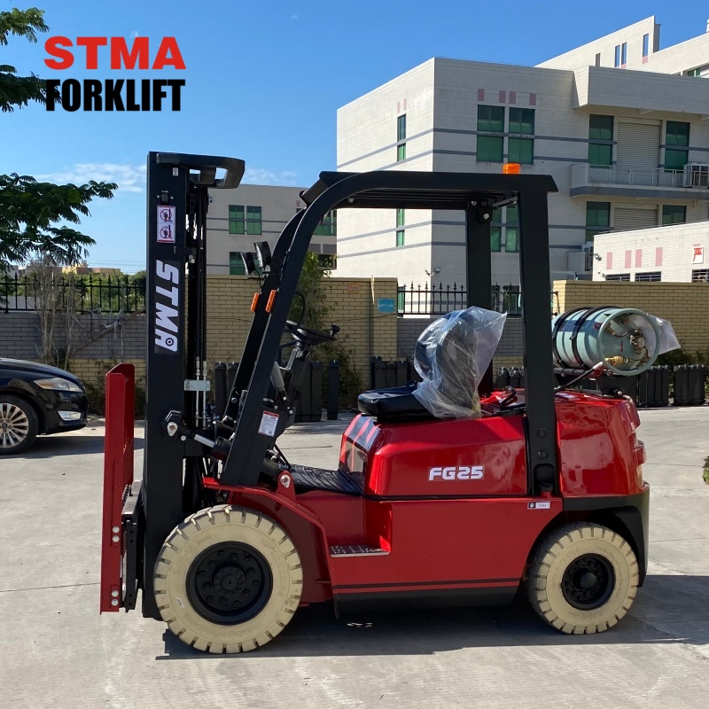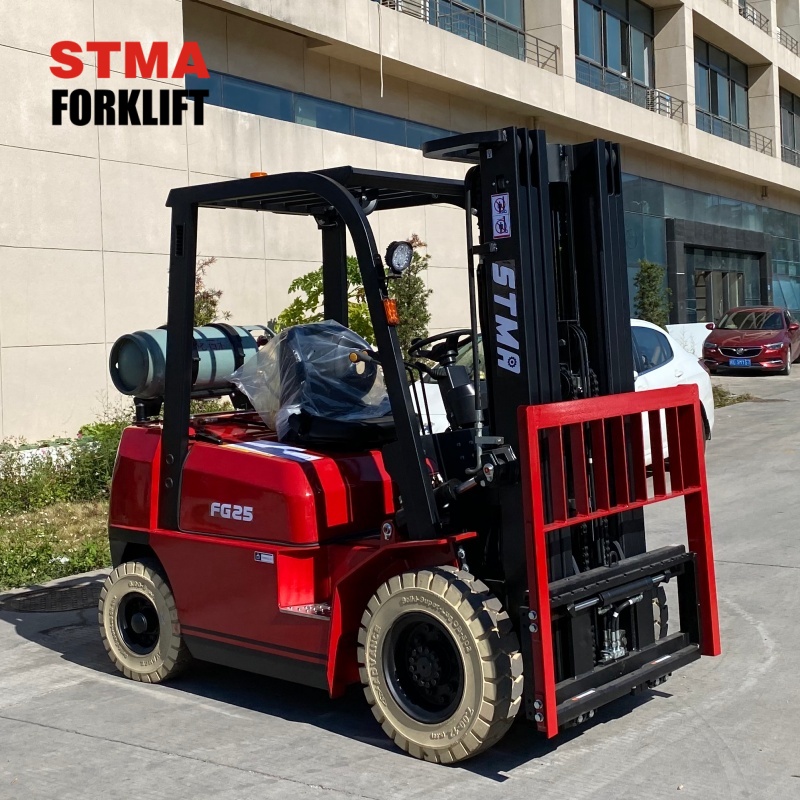 STMA 2.5ton gasoline lpg forklift with 6000mm 3- stage free lift mast and side shifter
