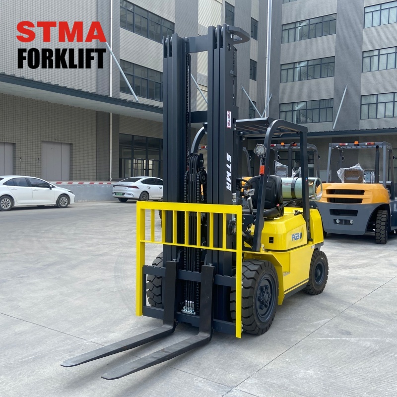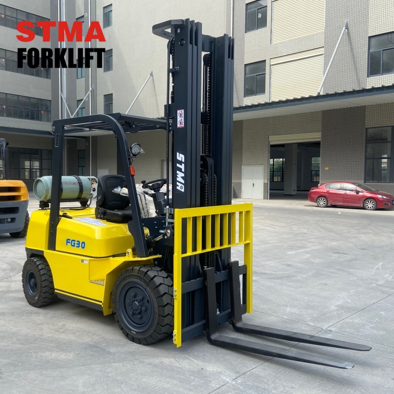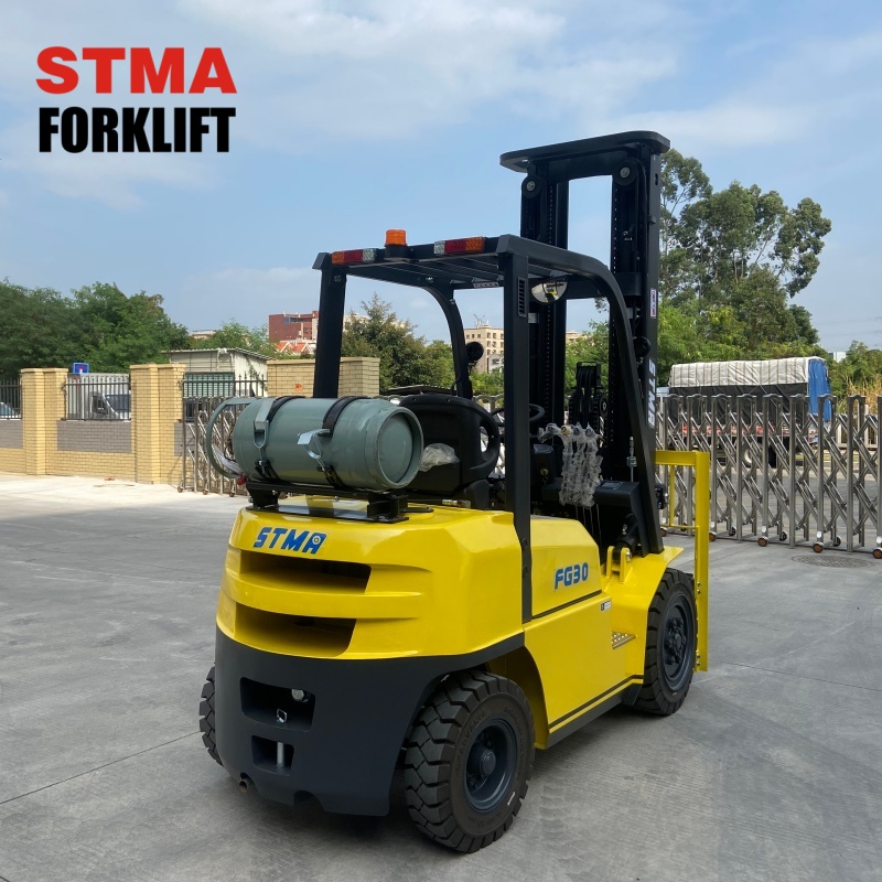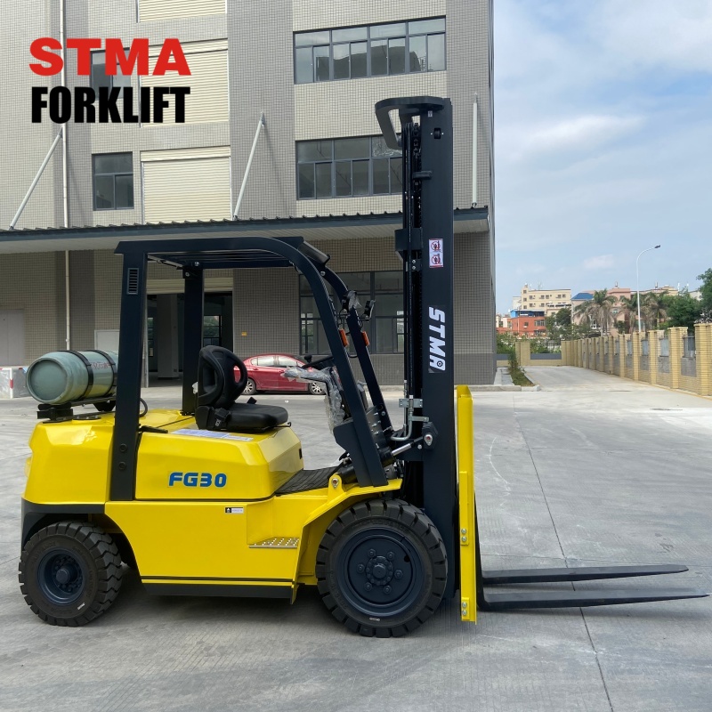 STMA brand 3tonne lpg gasoline forklift truck with Japanese Nissan K25 engine and 3-stage Mast Free Lift