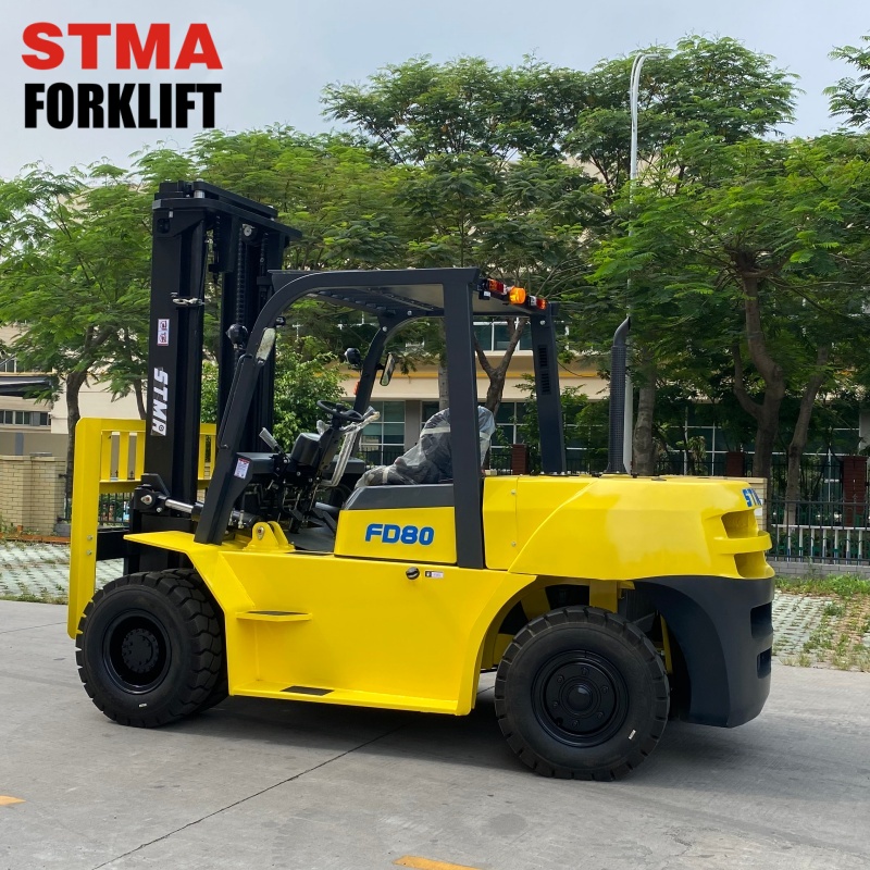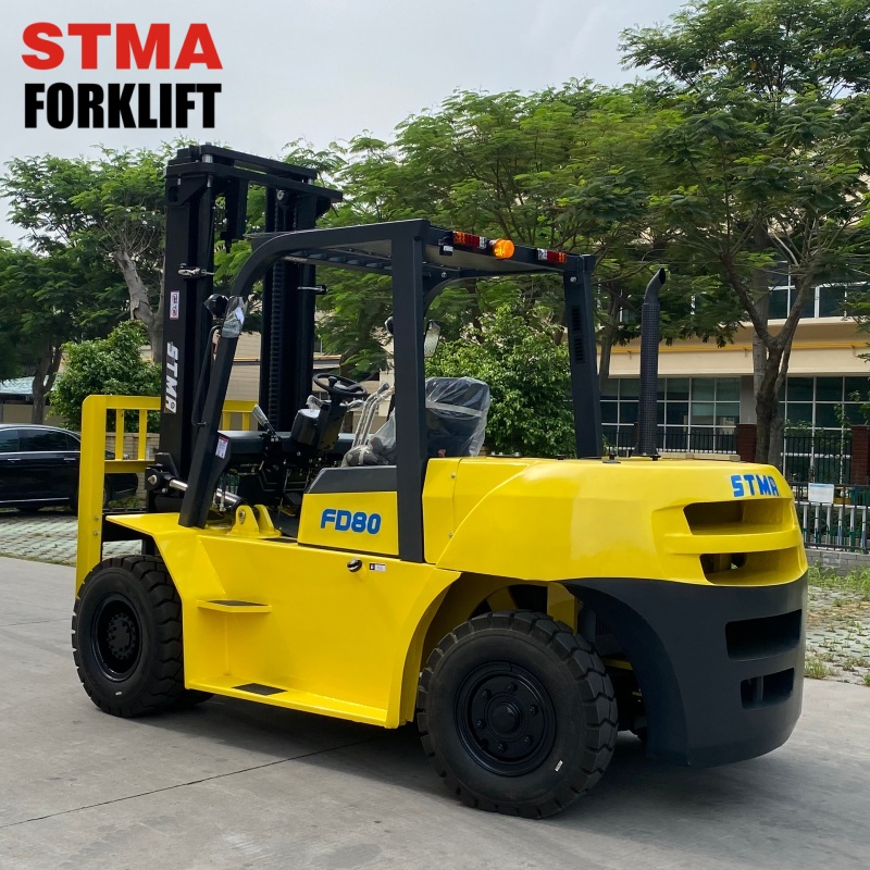 STMA brand 8tonne diesel forklift with Japanese Isuzu 6GB1 engine and 6000mm 3-stage free lift mast